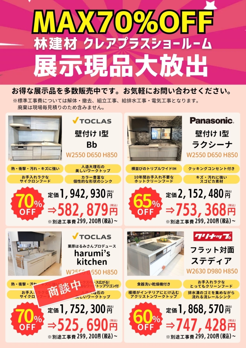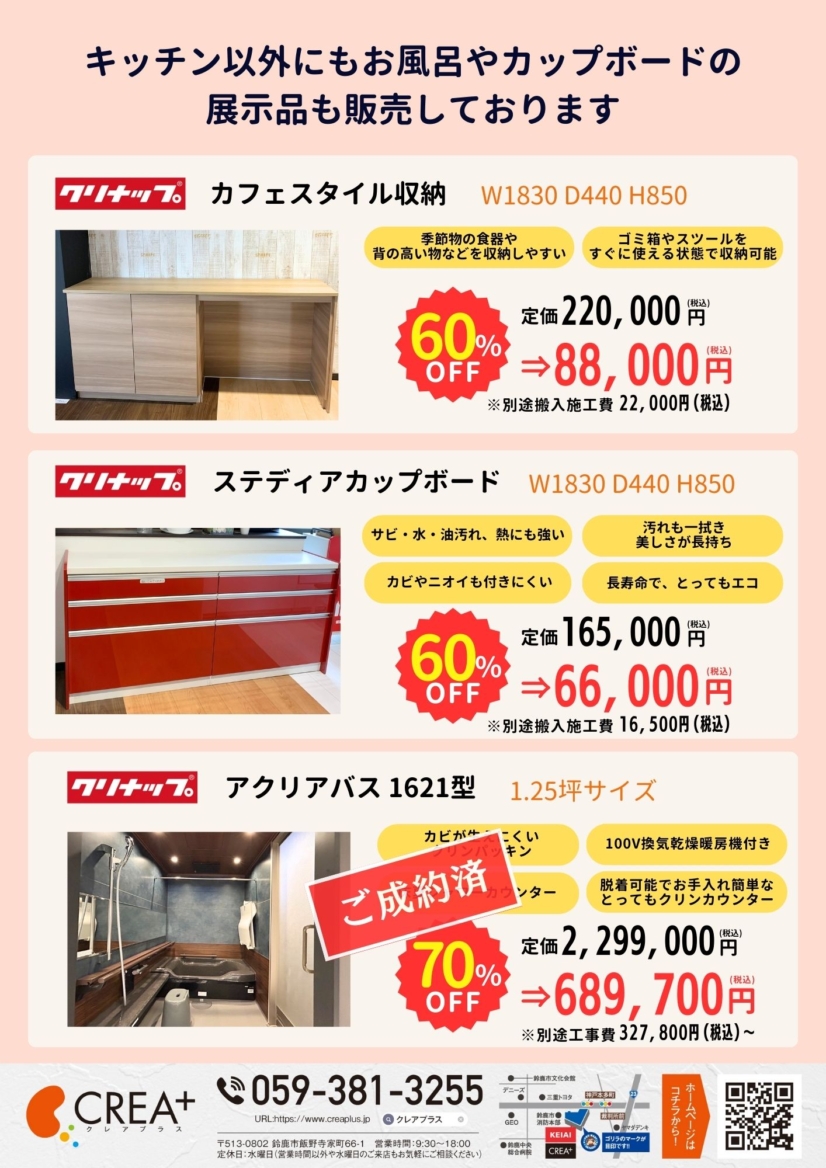 クレアプラスではオトクな展示品を多数販売中です!お気軽にお問合せください