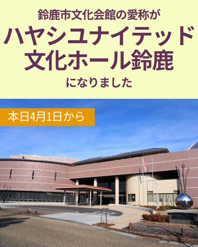 鈴鹿市文化会館が「ハヤシユナイテッド文化ホール鈴鹿」へ