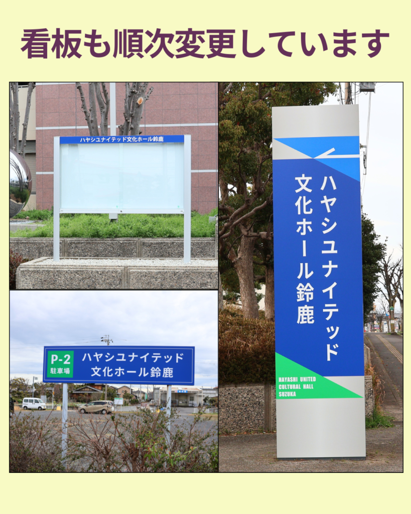 これからもハヤシユナイテッドグループはネーミングライツにふさわしい企業であるために、事業の発展を図りながら、地域の文化・芸術を支える活動を含め、地域貢献に取り組んでまいります。また、「ハヤシユナイテッド文化ホール鈴鹿」の愛称が市民の皆様に親しまれることを願っています。