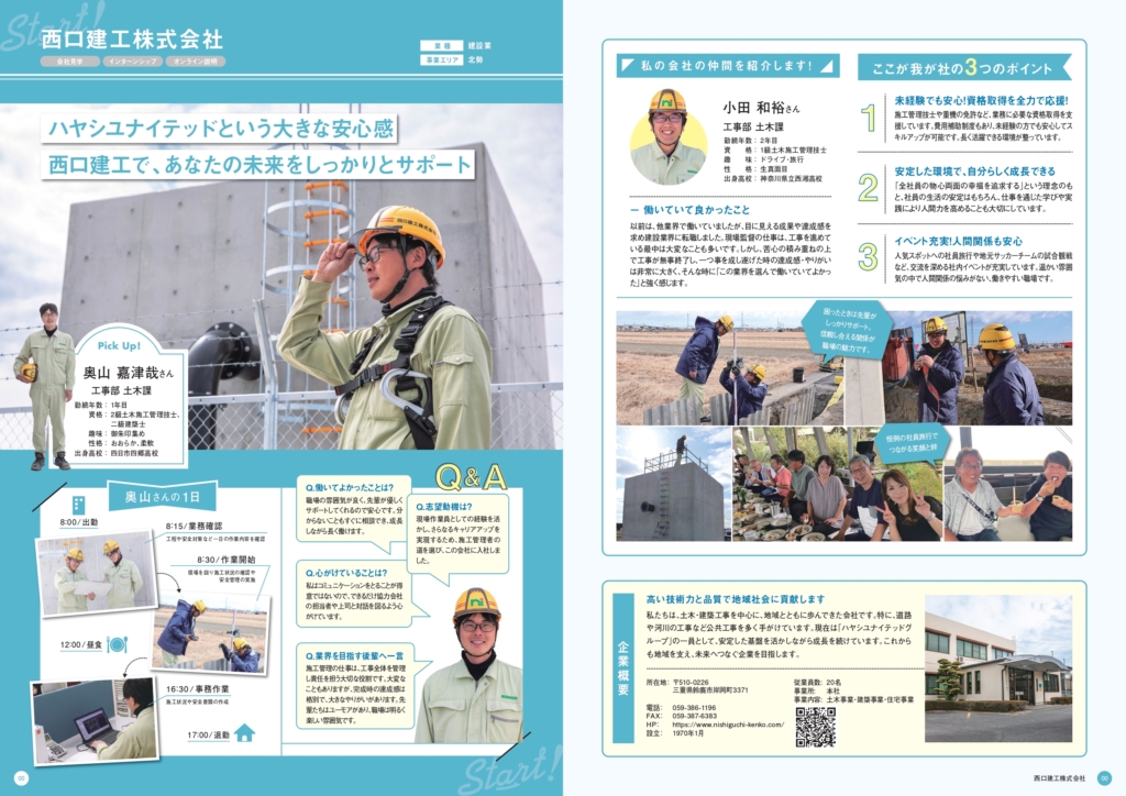 高校生の就職活動をサポートするフリーマガジン『Start!』に、西口建工が紹介されました。