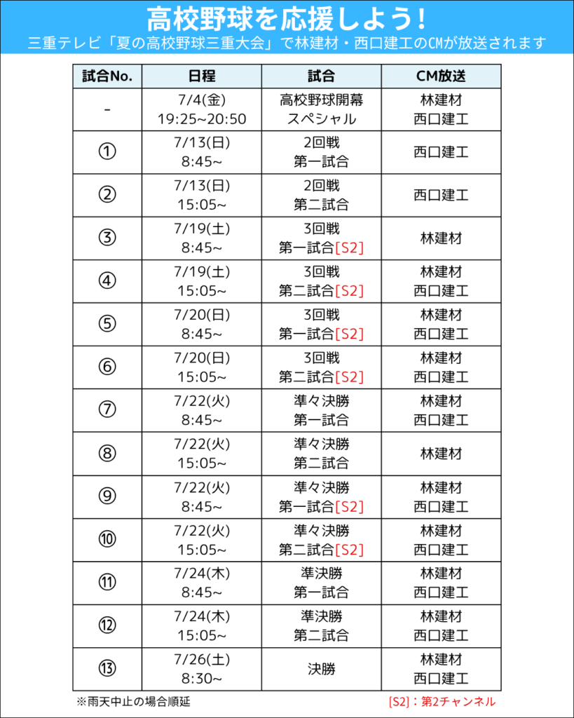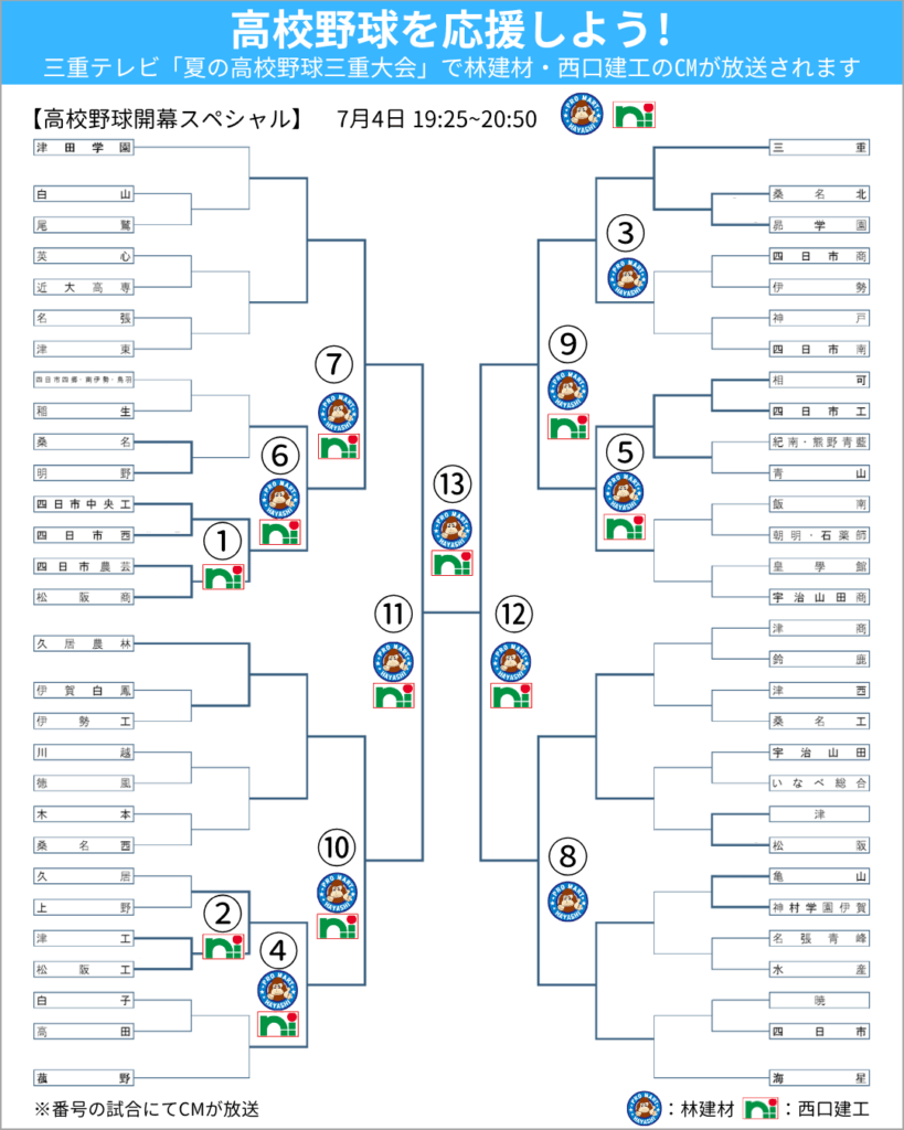 夏の高校野球三重大会にて、西口建工・林建材のCMが放送されます!