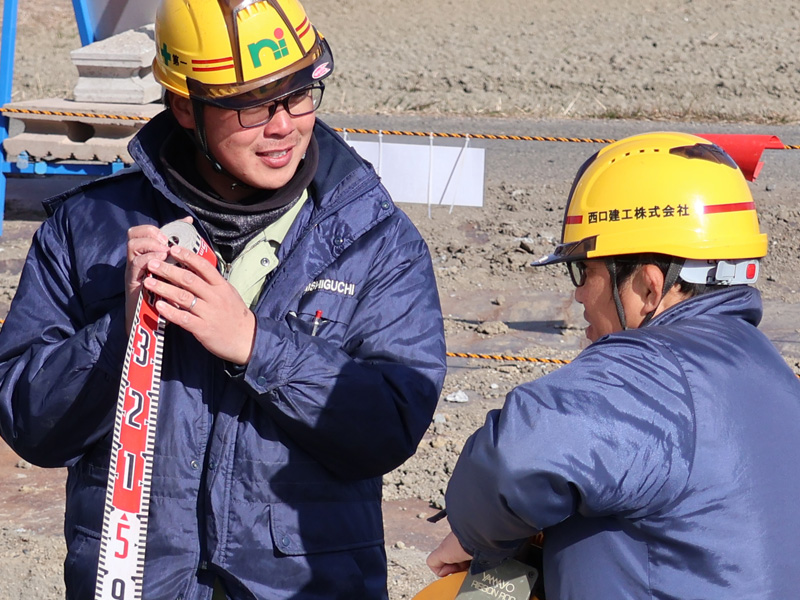 その一員である西口建工は、道路・河川などの公共工事を通じて、地域の安全と暮らしの基盤づくりを担っています。また、グループ連携により建材・設備を安定して確保し、高品質な施工体制を実現していることも当社の強みです。